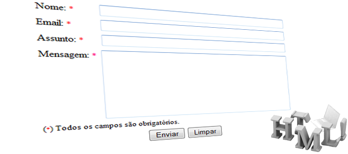 Repare que o formulário acima indica os campos obrigatórios apenas através da
